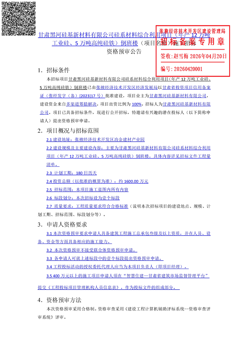 甘肃黑河硅基新材料有限公司硅系材料综合利用项目(年产12万吨工业硅、5万吨高纯硅铁)倒班楼